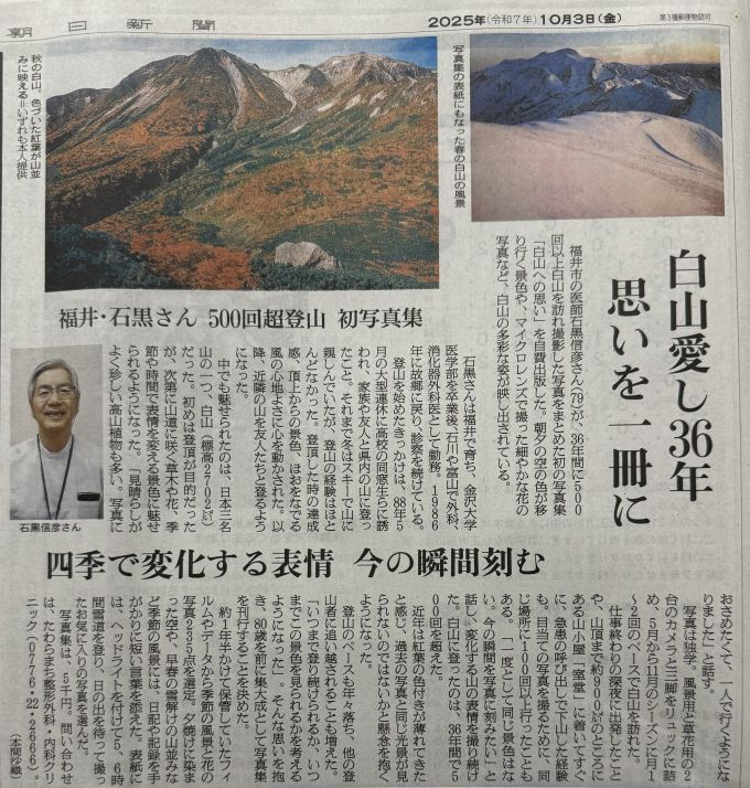 白山写真集「白山への思い」新聞記事