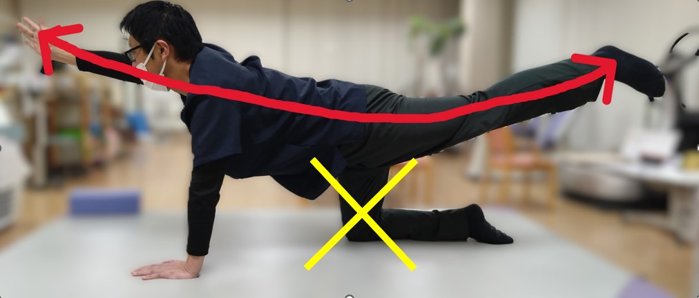 手足を上げることを意識するのではなく、おなかに力を入れることを意識しましょう。